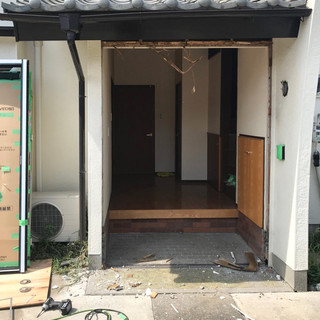 それまで古い引戸だった玄関戸を、新しく開き戸にしています(*‘∀‘)ノ