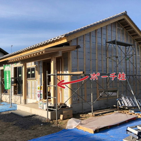 ↑の写真をご覧いただくと伝わりますでしょうか?少しずつ、完成形に近づいております。写真の説明文にも書きましたが、こちらのポーチ柱・・・