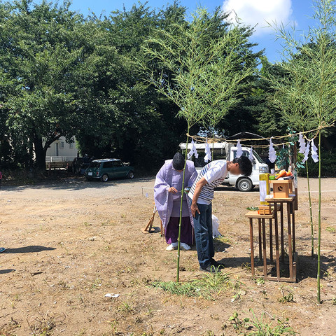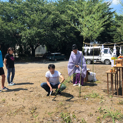 写真から、ご家族の仲の良さが伝わってくるような温かい地鎮祭となりました。