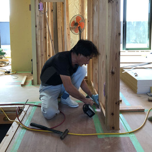 内部は前回は見えていた断熱材も、すっかり見えなくなり、収納などの棚がちらほらでき始めています。