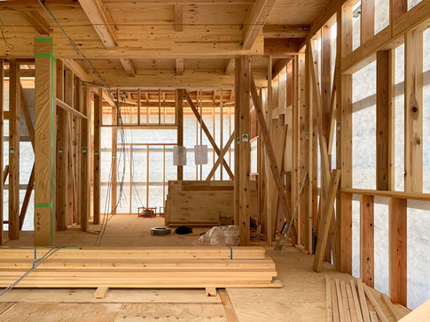 1~2枚目は断熱工事前なので、透湿防水シートで包まれている段階。