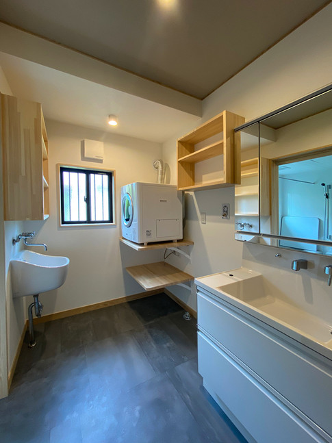 主にご家族の寝室としてのエリアになっている2階にも洗面化粧台を造作しました。