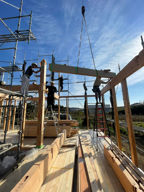 木材の凹凸を掛矢🔨で叩いて組んでいく様子はいつ見ても圧巻です🥰