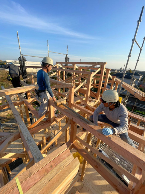 11月でも朝夜は寒かったので、大工さんも長袖を着用していますね😊